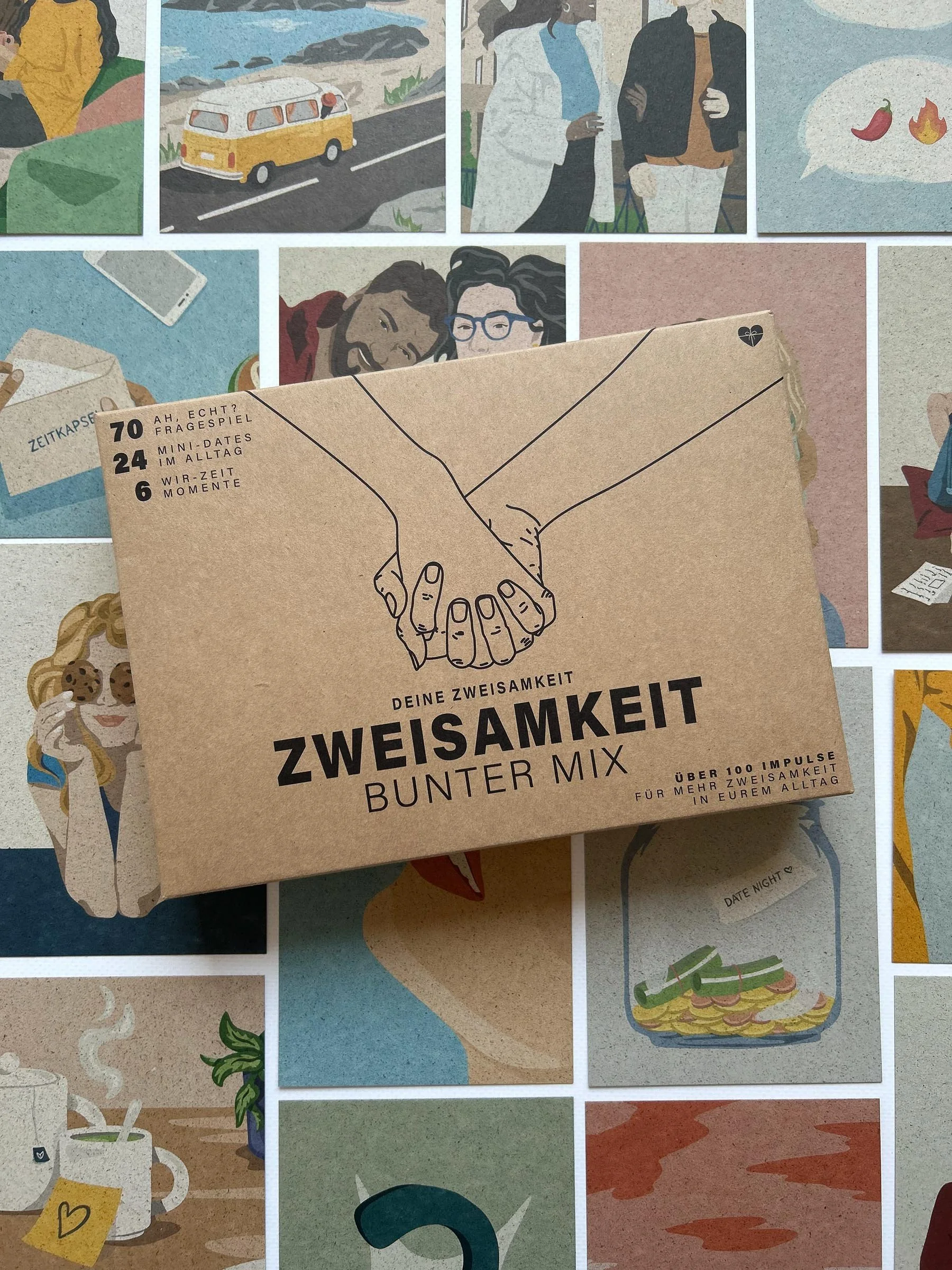 Zweisamkeits-Box ohne Kitsch (29 €) 4 Wochen voller Challenges, Spiele und Impulse für eine authentische Verbindung.